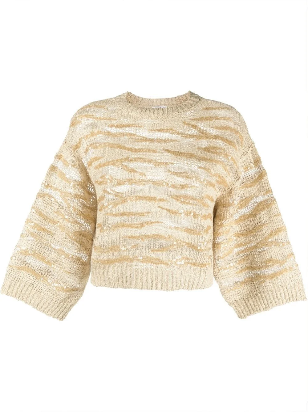 sequin-embellished cropped jumper Brunello Cucinelli presents tis knitted jumper to update a classic silhouette. This linen and silk blend is finished with all-over sequin embellishments for an eye-catching look. Made in Italy Composition Polyester 100%, Silk 42%, Linen/Flax 38%, Hemp 20% SIZE & FIT Model measurements Height 5 ft 10 in(1.78 m) Bust/Chest 30.31 in(77 cm) Hips 36.61 in(93 cm) Waist 24.8 in(63 cm) FittingInformation This piece fits true to size. We recommend you get your regular size Cut for a loose fit Made with a mid-weight fabric Washing instructions Hand Wash