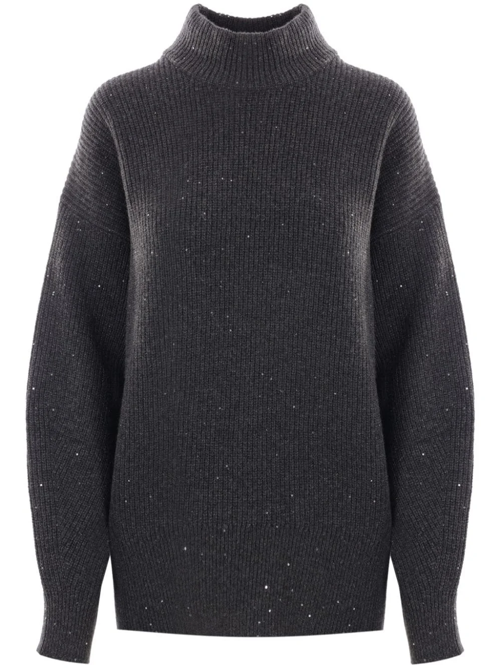sequin-embellished high-neck jumper Highlights - Anthracite grey - Wool-cashmere blend - Knitted construction - Sequin embellishment - High neck - Long sleeves - Ribbed trim - Straight hem Made in Italy Composition Cashmere 47%, Wool 47%, Polyester 4%, Polyamide 2%