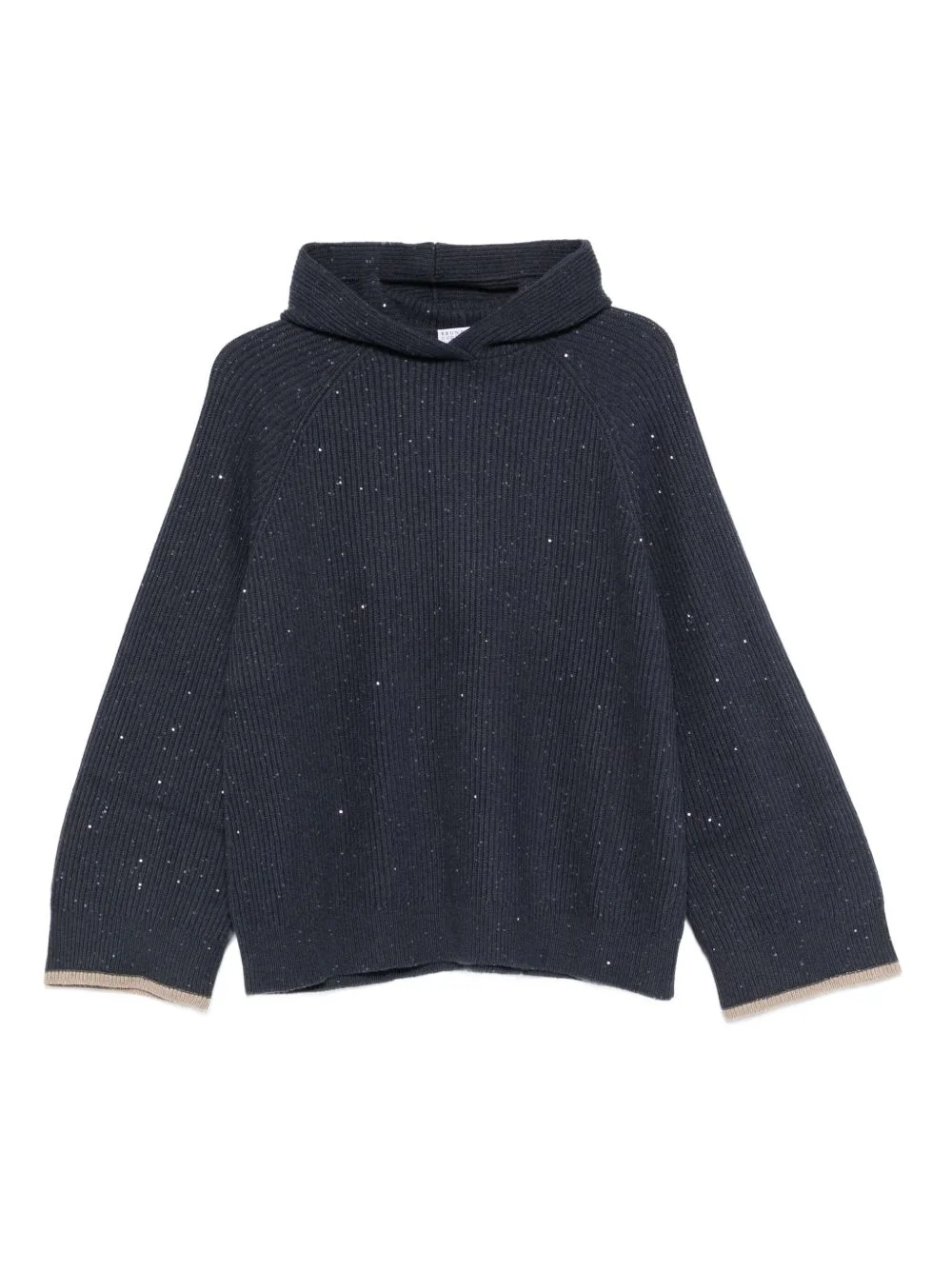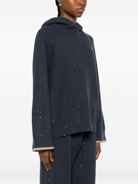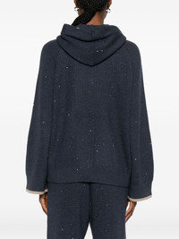 sequin-embellished hoodie Highlights - Navy blue - Ribbed knit - Classic hood - Long sleeves - Sequin embellished Made in Italy Composition Cashmere 93%, Silk 7% SIZE & FIT Model measurements Height 5 ft 8 in(1.73 m) Bust/Chest 29.92 in(76 cm) Hips 33.07 in(84 cm) Waist 23.22 in(59 cm) Washing instructions Read Manufacturer Guidelines