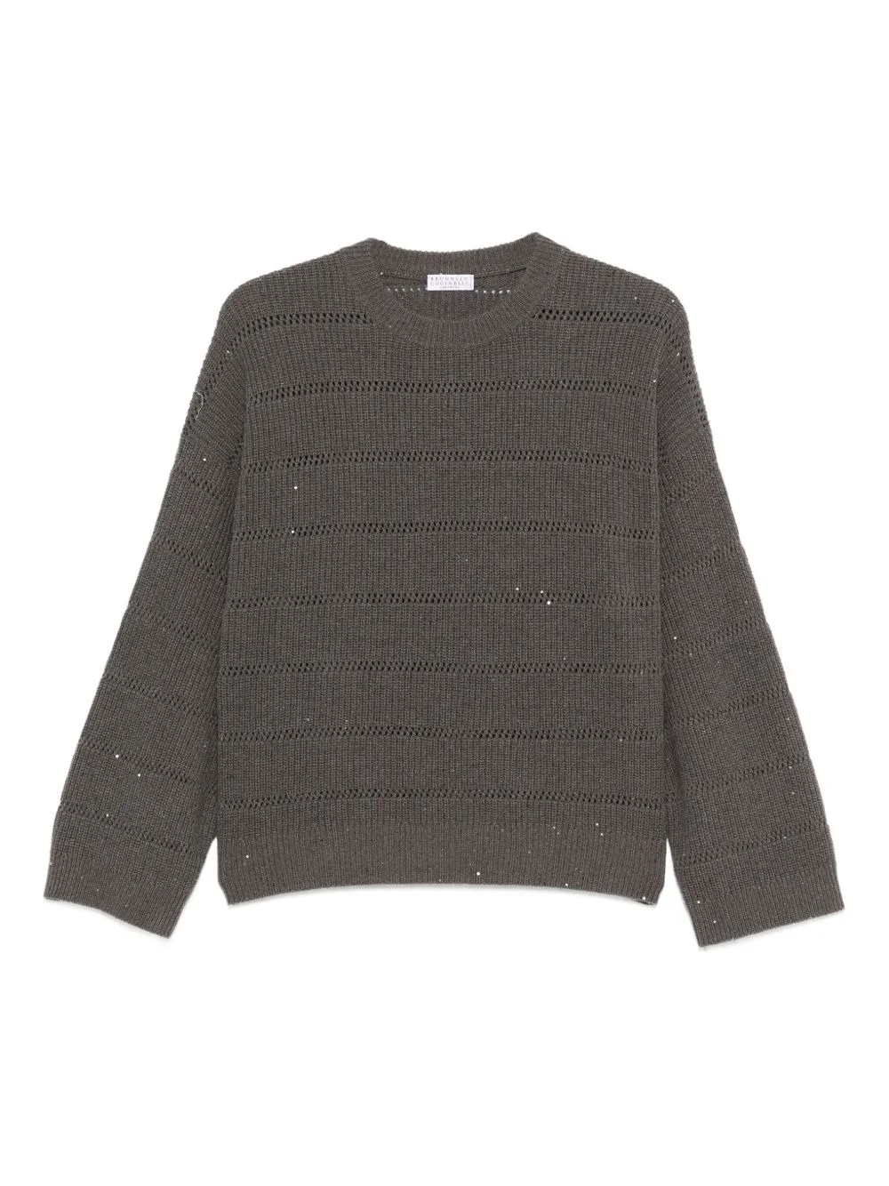 sequin-embellished knit sweater Highlights - Grey - Sequin embellishment - Round neck - Long sleeves - Open knit - Ribbed hem Made in Italy Composition Sequin 100%, Wool 47%, Cashmere 47%, Polyester 4%, Polyamide 2% SIZE & FIT Model measurements Height 5 ft 10 in(1.78 m) Bust/Chest 33.85 in(86 cm) Hips 36.61 in(93 cm) Waist 26.77 in(68 cm) Washing instructions Hand Wash