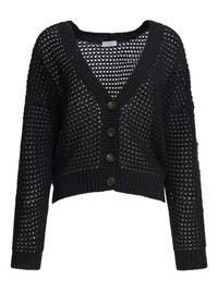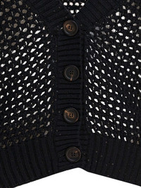 sequin-embellished open-knit cardigan Highlights - Black - Sequin embellishment - Open knit - V-neck - Button fastening - Long sleeves Made in Italy Composition Cotton 96%, Polyester 4% Washing instructions Read Manufacturer Guidelines
