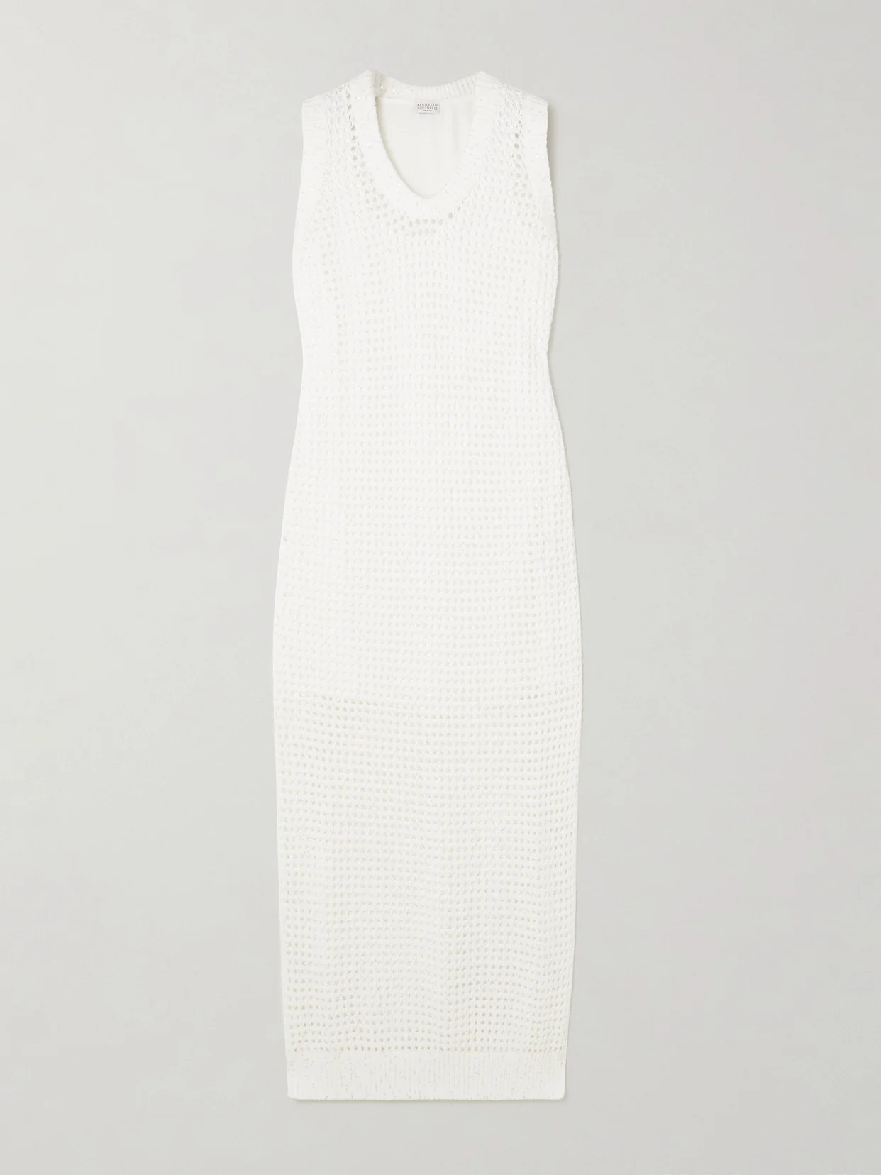 Brunello Cucinelli's midi dress is flecked with sequins that'll catch the light prettily, whether from the sun or the sparkle of a disco ball. Made in Italy, it's knitted in an open stitch from soft cotton-blend and designed for a slim fit.