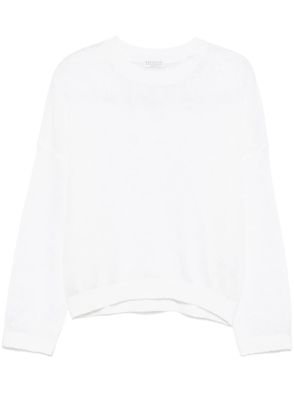 sequin-embellished sweater Highlights - White - Crew neck - Drop shoulder - Long sleeves Made in Italy Composition Polyamide 100%, Linen/Flax 75%, Silk 25% Washing instructions Hand Wash