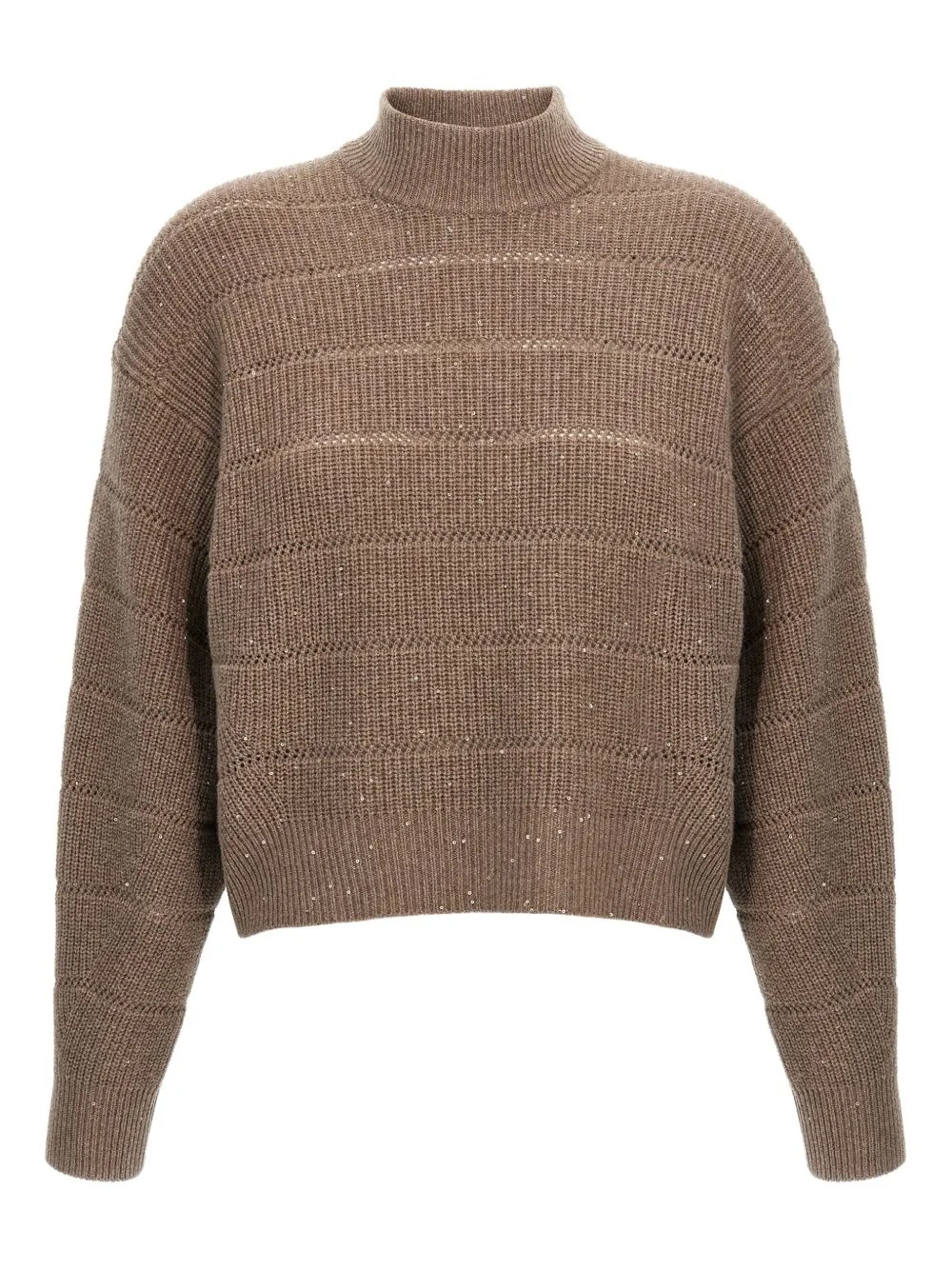 sequin-embellished sweater Highlights - Brown - Textured ribbed design - Turtleneck style - Dropped shoulder seams - Sparkling accent details Made in Italy Composition Wool 47%, Cotton 47%, Polyamide 6% Washing instructions Read Manufacturer Guidelines