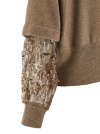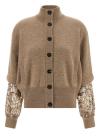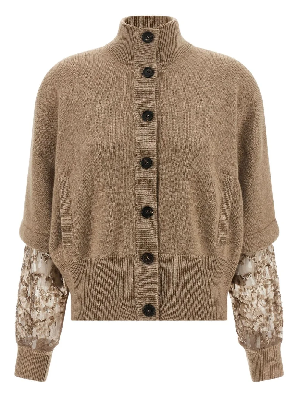 sequin-embellished cashmere cardigan Highlights - Beige - Cashmere - Sequin embellishment - Tulle-insert sleeves - Button closure - High neck - This piece features very delicate detailing. handle with extreme care to avoid damage such as broken feathers or loss of sequins. Made in Italy Composition Cashmere 100% Washing instructions Read Manufacturer Guidelines