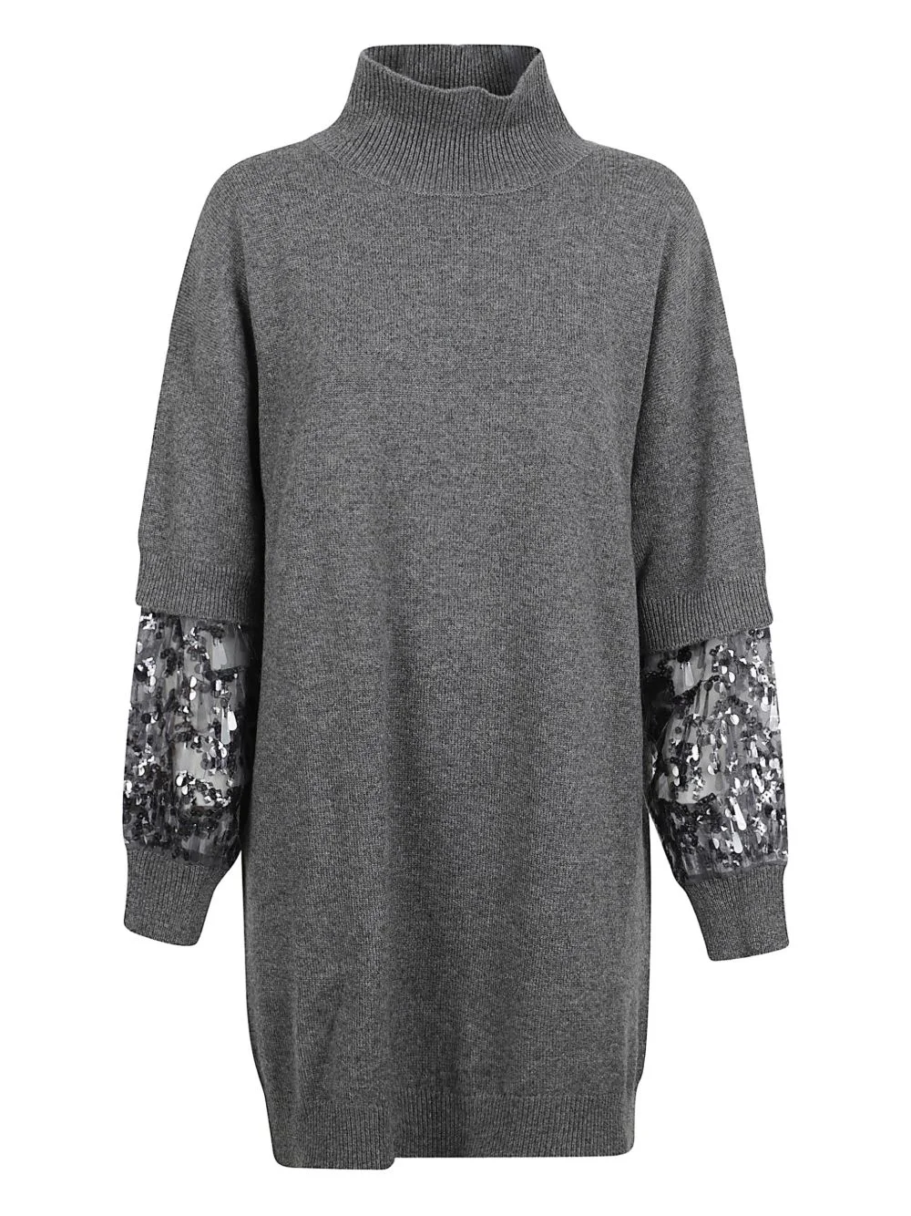 high-neck sequin mini dress Highlights - Grey - Knit - High neck - Sequin embellishment Made in Italy Composition Cashmere 100% Washing instructions Read Manufacturer Guidelines