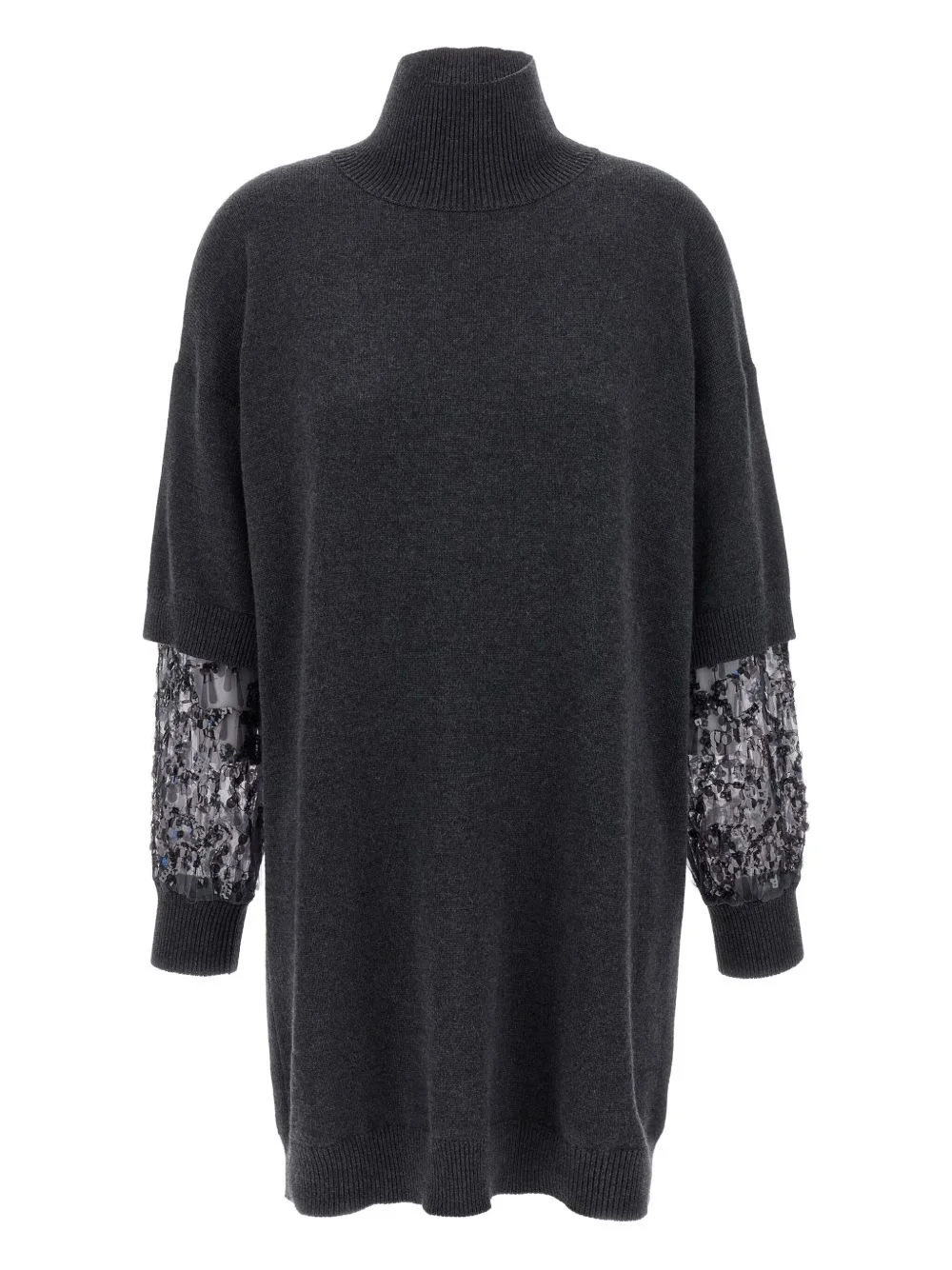sequin-embellished high-neck mini dress Highlights - Grey - Cashmere knit - High neck - Double-layered sleeves - Tulle insert - Sequin embellishment Made in Italy Composition Cashmere 100% Washing instructions Read Manufacturer Guidelines