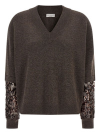 sequin-embellished cashmere sweater Highlights - Brown - Cashmere - V-neck - Double-layered long sleeves - Sequin embellishment Made in Italy Composition Cashmere 100% Washing instructions Read Manufacturer Guidelines