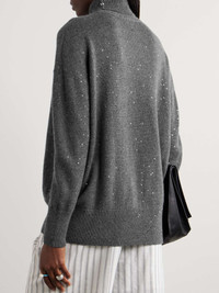 EDITORS'NOTES Brunello Cucinelli's sweater might look classic at first glance, but the scattering of sequins makes it radiate something more special. It's knitted from cashmere and silk-blend and has a cozy turtleneck collar. Style yours with everything from denim to midi skirts and palazzo pants. SIZE & FIT Model measurements: - Fits true to size, take your normal size - Designed for a loose fit - Mid-weight knit - Model is 177cm/ 5'10" and is wearing a size Small - Bust: 82cm/ 32.5" - Waist: 66cm/ 26" - Hip: 90cm/ 35.5" DETAILS & CARE - Gray cashmere and silk-blend - Slips on - 80% cashmere, 20% silk - Hand wash