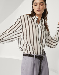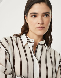 Cotton organza shirt with dazzling stripe embroidery