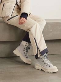 EDITORS'NOTES Even classic hiking styles feel glamorous in the hands of Brunello Cucinelli. Crafted in Italy from suede, these boots are trimmed and fully lined with cozy faux shearling and feature the signature Monili beads along the heel tabs. The chunky rubber soles ensure plenty of grip and traction. SIZE & FIT - Fits true to size, take your normal size - Italian sizing DETAILS & CARE - Stone suede, cream shearling - Lace-up front