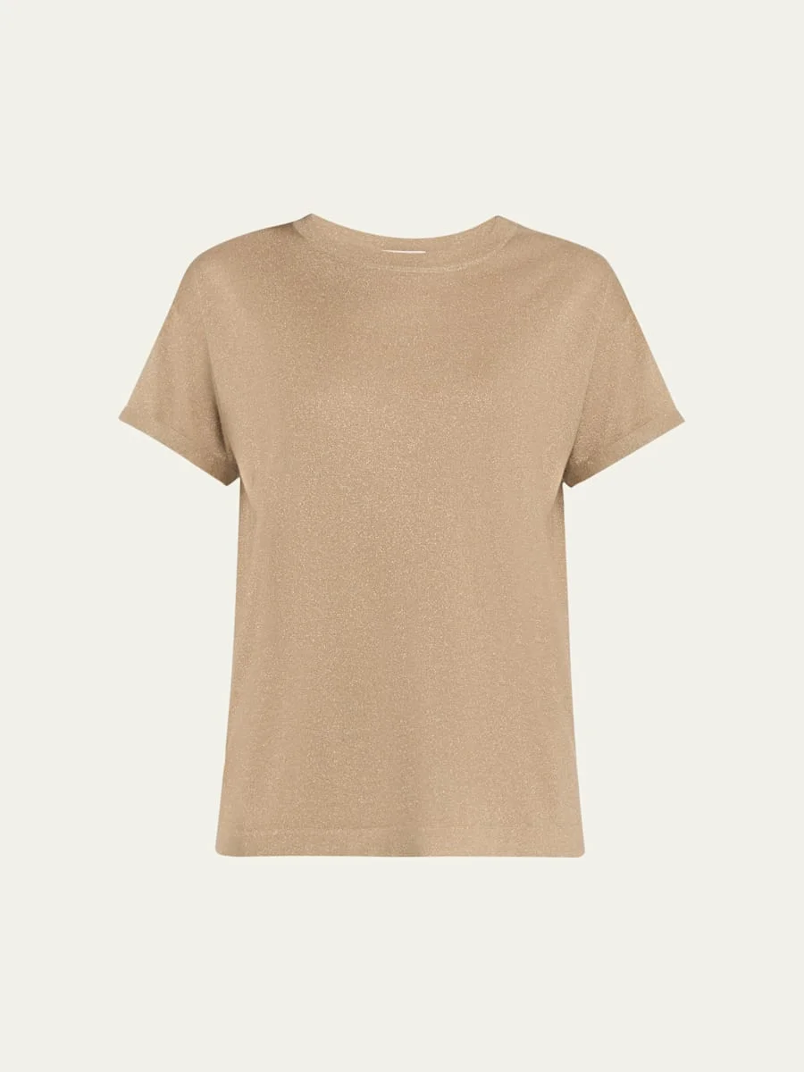 Shimmering Cashmere Short-Sleeve Crewneck Sweater