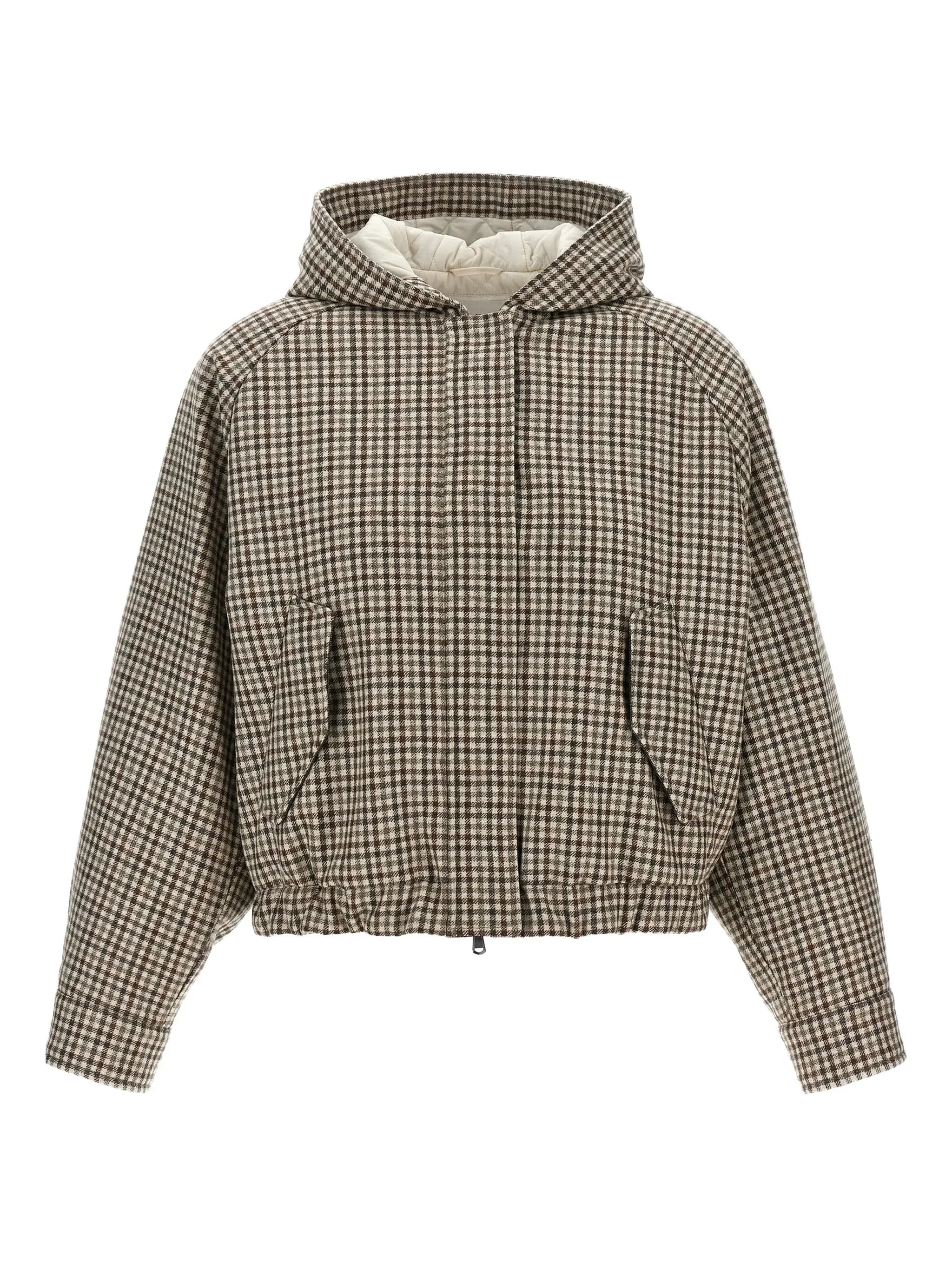 Brunello Cucinelli Shiny Zipper Pull Check-print Jacket
