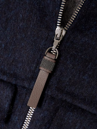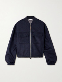 Brunello Cucinelli's bomber jacket is perfect for transitional weather. Made in Italy from naturally insulating wool, it has a ribbed collar and flap chest pockets that give it a utilitarian feel. The leather zipper pull is adorned with the brand's signature Monili beads for a bit of shine. Size & Fit - Fits true to size, take your normal size - Designed for a relaxed fit - Elasticated at the hem - Mid-weight, non-stretchy fabric - Model is 177cm/ 5'10" and is wearing an IT 40 Model measurements: - Bust: 80cm/ 31.5" - Waist: 60cm/ 23.5" - Hip: 89cm/ 35" Details & Care - Navy wool, brown leather - Two-way zip fastening through front - 100% wool - Dry clean