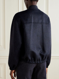 Bead-embellished leather-trimmed wool bomber jacket Navy