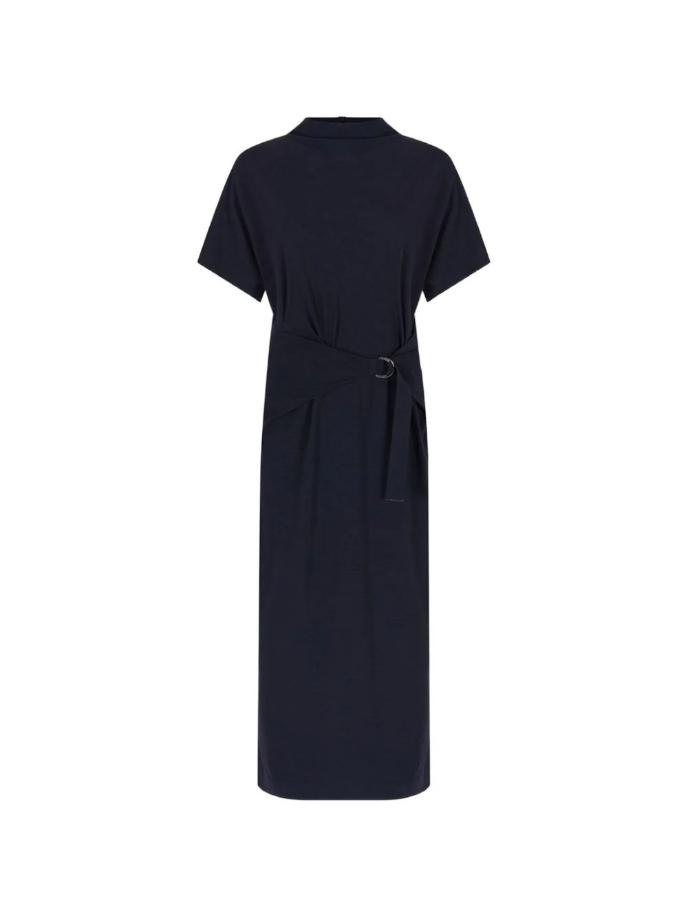 short-sleeve belted midi dress Highlights - Dark blue - Matching belt - Back zip fastening - Back centre slit - Short sleeves Made in Italy Composition Wool 48%, Viscose 48%, Elastane 4% Washing instructions Read Manufacturer Guidelines