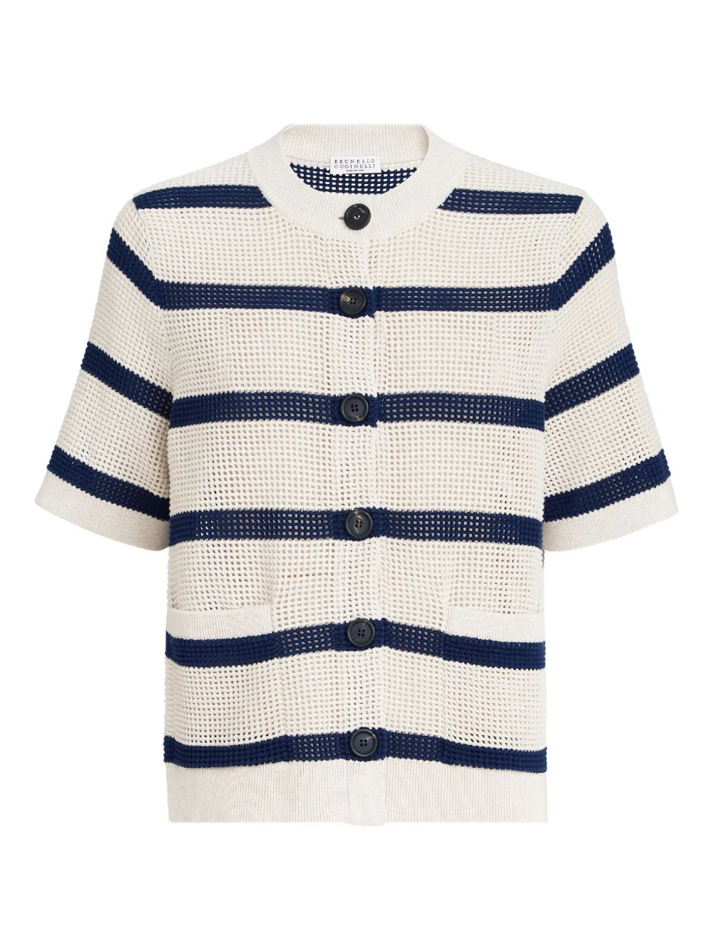 short-sleeve striped cardigan Highlights - Blue/white - Striped pattern - Button fastening - Short sleeves - Front pockets Made in Italy Composition Cotton 100% Washing instructions Read Manufacturer Guidelines