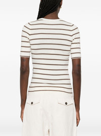 striped-pattern T-shirt Highlights - Beige and brown - Striped pattern - Round neck - Short sleeves Made In Italy Composition Virgin Wool 90%, Viscose 77%, Metallized Polyester 23%, Cashmere 10% Washing instructions Hand Wash