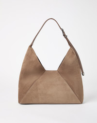 The velvety look of calfskin suede updates the retro lines of this hobo bag. Versatile and spacious, the style showcases soft, essential lines enhanced by the refined leather’s elegant texture. The adjustable strap features a practical buckle, completing the accessory with a functional detail. MATERIALS Calfskin suede has an elegant, sophisticated appearance characterized by its unmistakable velvety, slightly uneven texture. DETAILS Adjustable shoulder strap Magnetic snap closure Leather lining 2 open internal compartments Bag is 40 cm (15,75") long, 16 cm (6,30") wide and 26 cm (10,24") high REAL LEATHER