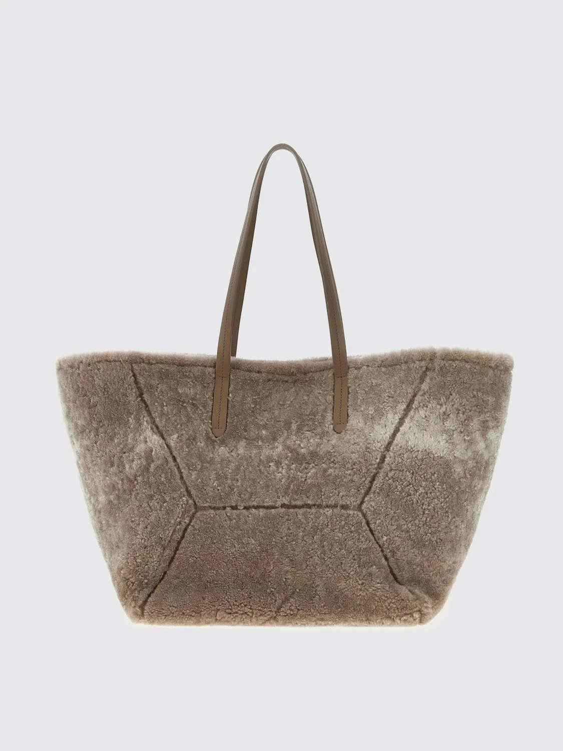 DESCRIPTION - Style: Country - Lining: With printed logo - Model: Tote - Closure: Magnetic - Shape: Flared - Handle: Double - Materials: Lambskin - Pattern: Plain-colored DETAILS AND CARE Composition 100% lamb leather (Ovis aries) SIZE AND FIT Sizes Width : 30 cm Height: 30 cm Depth: 27 cm Designer code: MBLRD2571 C7890 Giglio Code: H38124 Designer: Brunello Cucinelli Collection: Brunello Cucinelli Woman Category: Bags Brunello Cucinelli