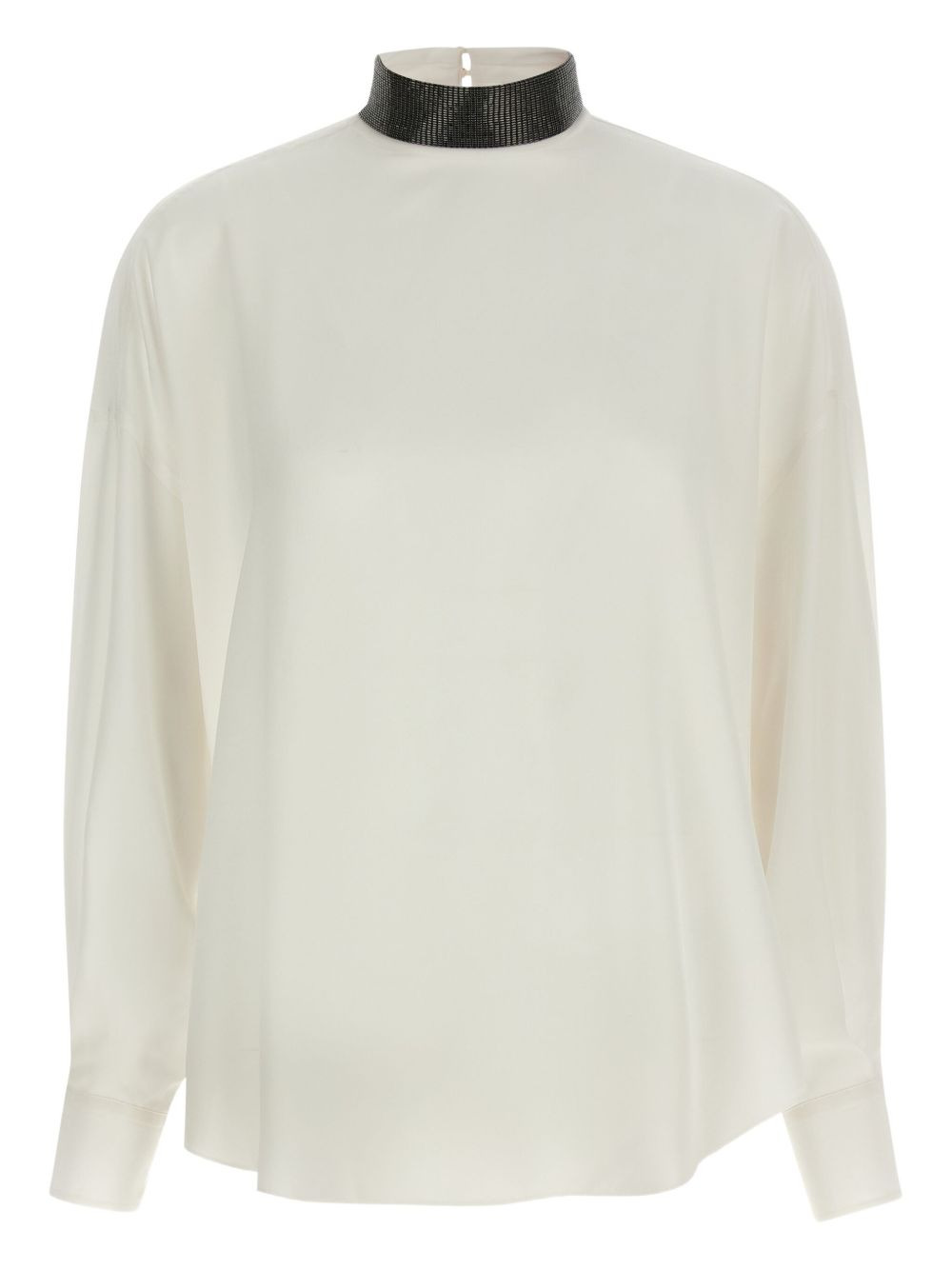 high-neck embellished blouse Highlights - Beige - High neck - Removable embellishment - Long sleeves - Button cuffs - Back button closure Made in Italy Composition Silk 100%