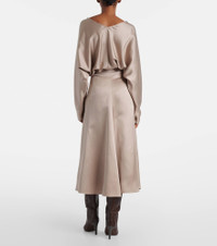 Brunello Cucinelli's designs are created in Solomeo, a medieval hamlet whose art and traditions are woven into the house's every fiber. Crafted from pure silk, this fully-lined midi skirt features an elegant silhouette with zipped side closure. Product Details - Material: 100% silk - Care instructions: dry clean - Made in Italy - Designer color name: Light Taupe - Item color: gray - Lining: 65% acetate, 35% polyester - Contains non-textile parts of animal origin - Closure: zipped side - Fully lined - Item number: P01091758 Size & Fit - True to size - Non-stretchy fabric - High-waisted - Height of model is 175cm-69" and wears a size IT 40