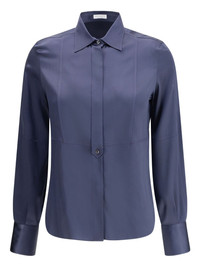 long-sleeve silk shirt Highlights - Dark blue - Long sleeves - Button fastening - Classic collar - Silk - Long sleeves - Curved hem Made in Italy Composition Silk 96%, Elastane 4% Washing instructions Read Manufacturer Guidelines