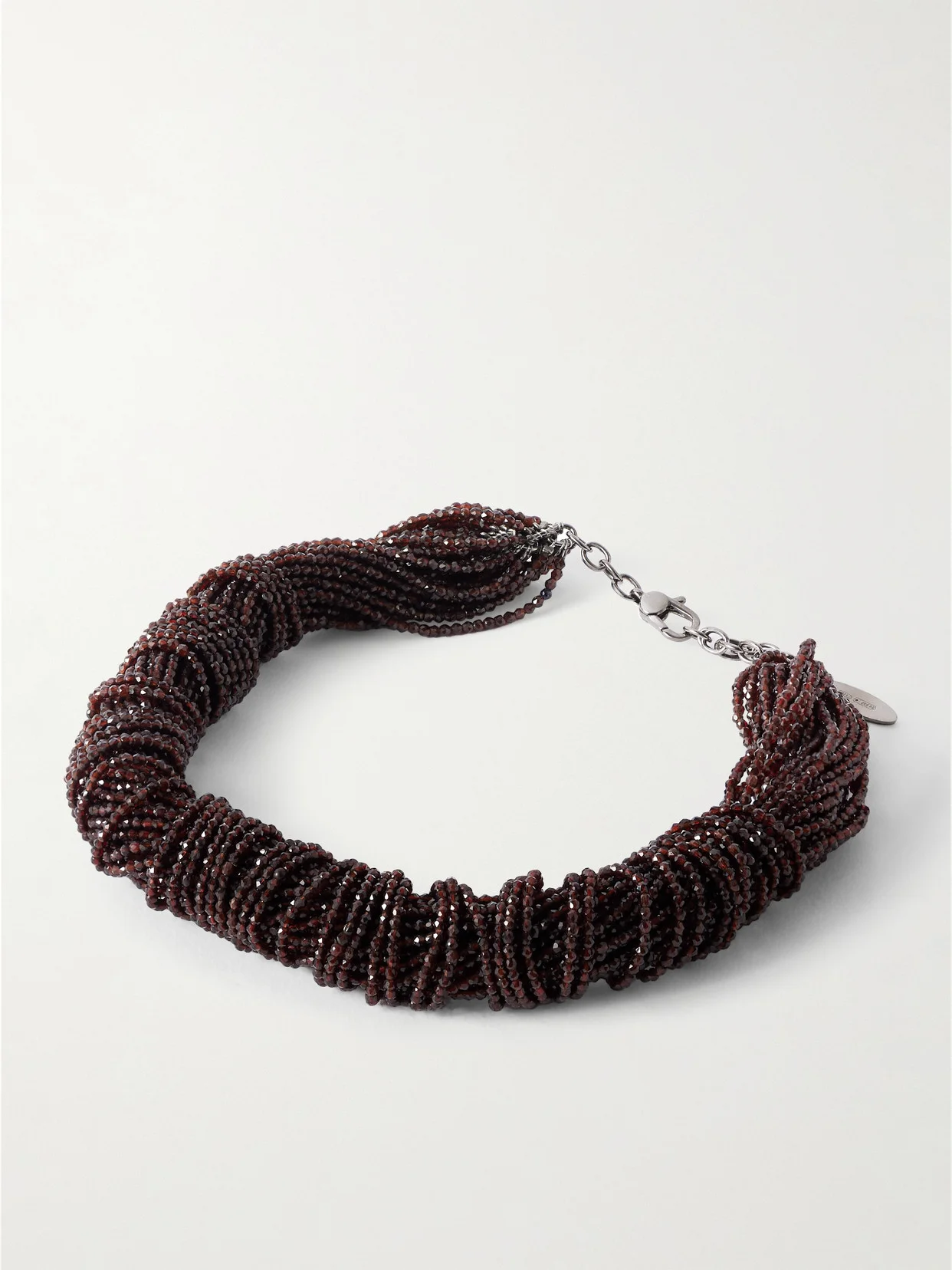 Brunello Cucinelli's necklace sparkles with twisted strands of dark, shimmering beads. It's made from silver-tone metal and has an adjustable fastening so you can customize the drop.
