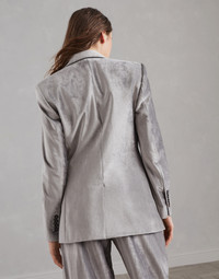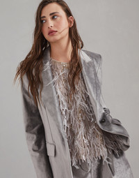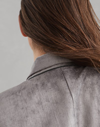 A contemporary feel and a fluid look enrich the elegant style of this new blazer. The soft hand of cotton velvet is paired with viscose, making the texture shimmer and smooth with a feminine allure. The pronounced lapels and slightly tapered lines define the silhouette, while the fine rows of precious monili leave a sparkling trail behind the neck in true Brunello Cucinelli style. MATERIALS Cotton and viscose Sleek velvet is a light, comfortable fabric with a glossy appearance and a smooth, extremely soft hand. These characteristics make the material very fluid and pleasant to wear. The silk-blend crepe lining completes the garment. DETAILS Horn button closure Silk-blend crepe lining Hand pockets with flap Cuffs have four horn buttons Single back vent Peak lapel Nickel-free monili decoration 58% COTTON, 42% VISCOSE