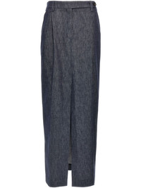 Monile skirt Highlights - Blue - Concealed fly and button fastening - Belt loops - Two side inset pockets - Two rear jetted pockets Made in Italy Composition Cotton 100%