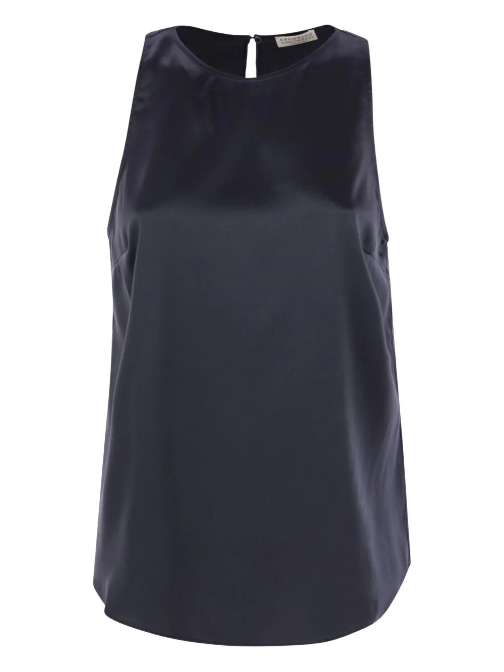 sleeveless blouse Highlights - Blue - Silk-blend - Back fastening Made in Italy Composition Eco Brass 100%, Silk 96%, Lycra 4% Washing instructions Read Manufacturer Guidelines