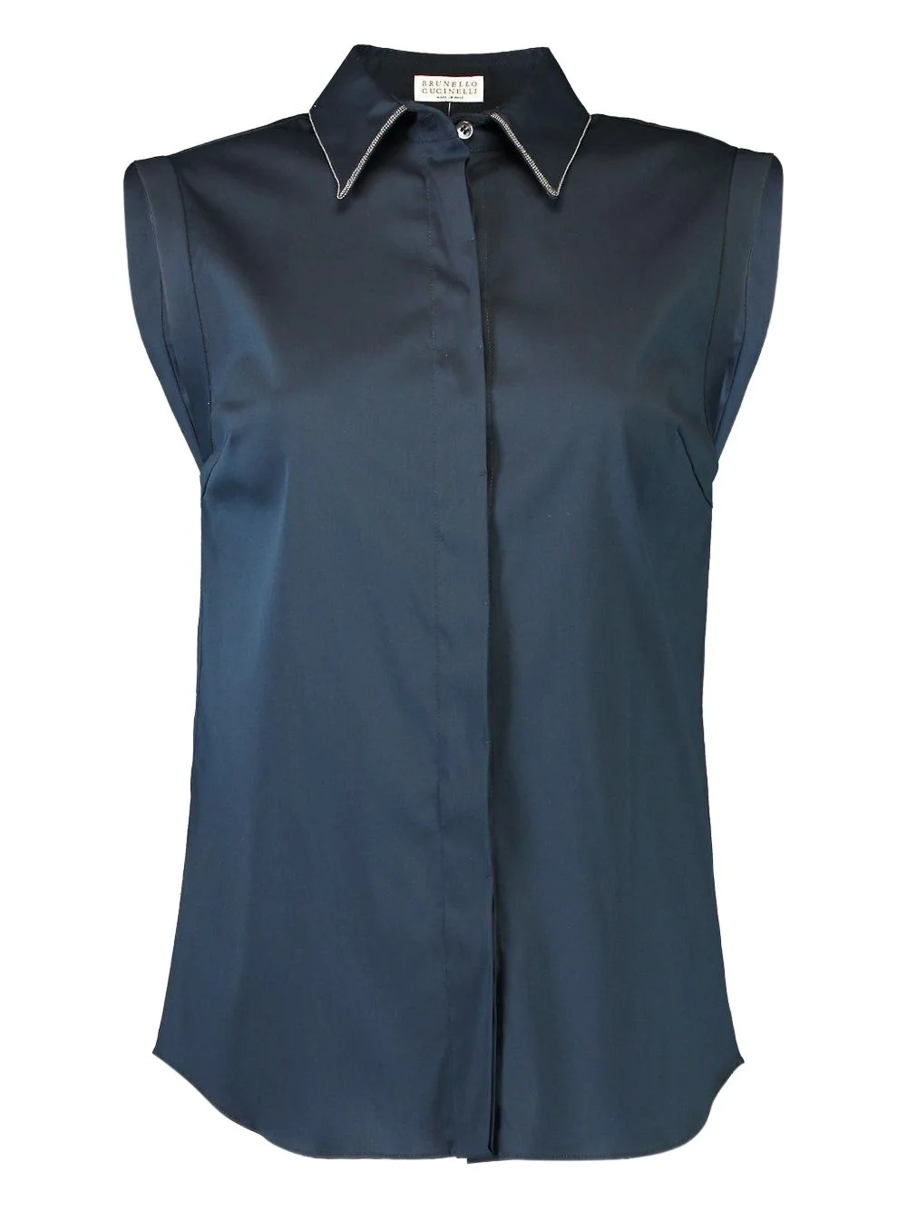 Monili sleeveless shirt Highlights - Blue - Trim detail - Sleeveless - Button fastening - Pointed collar Made in Italy Composition Cotton 72%, Polyamide 23%, Elastane 5% Washing instructions Dry Clean Only