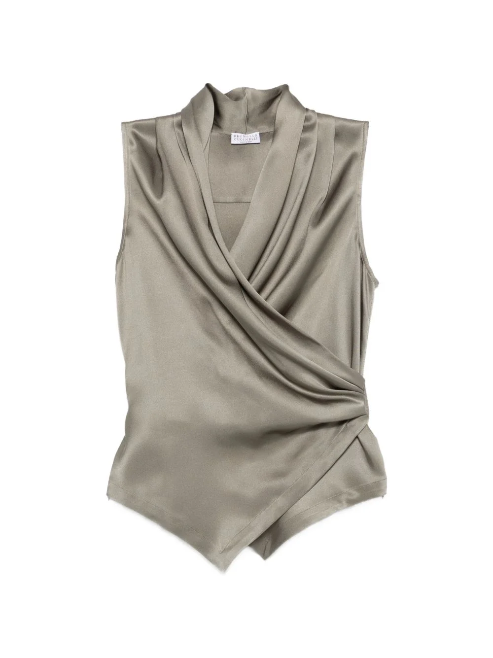 draped sleeveless top Highlights - Army green - Sleeveless - V-neck - Asymmetric hem - Draped effect Made in Italy Composition Silk 100% Washing instructions Dry Clean Only