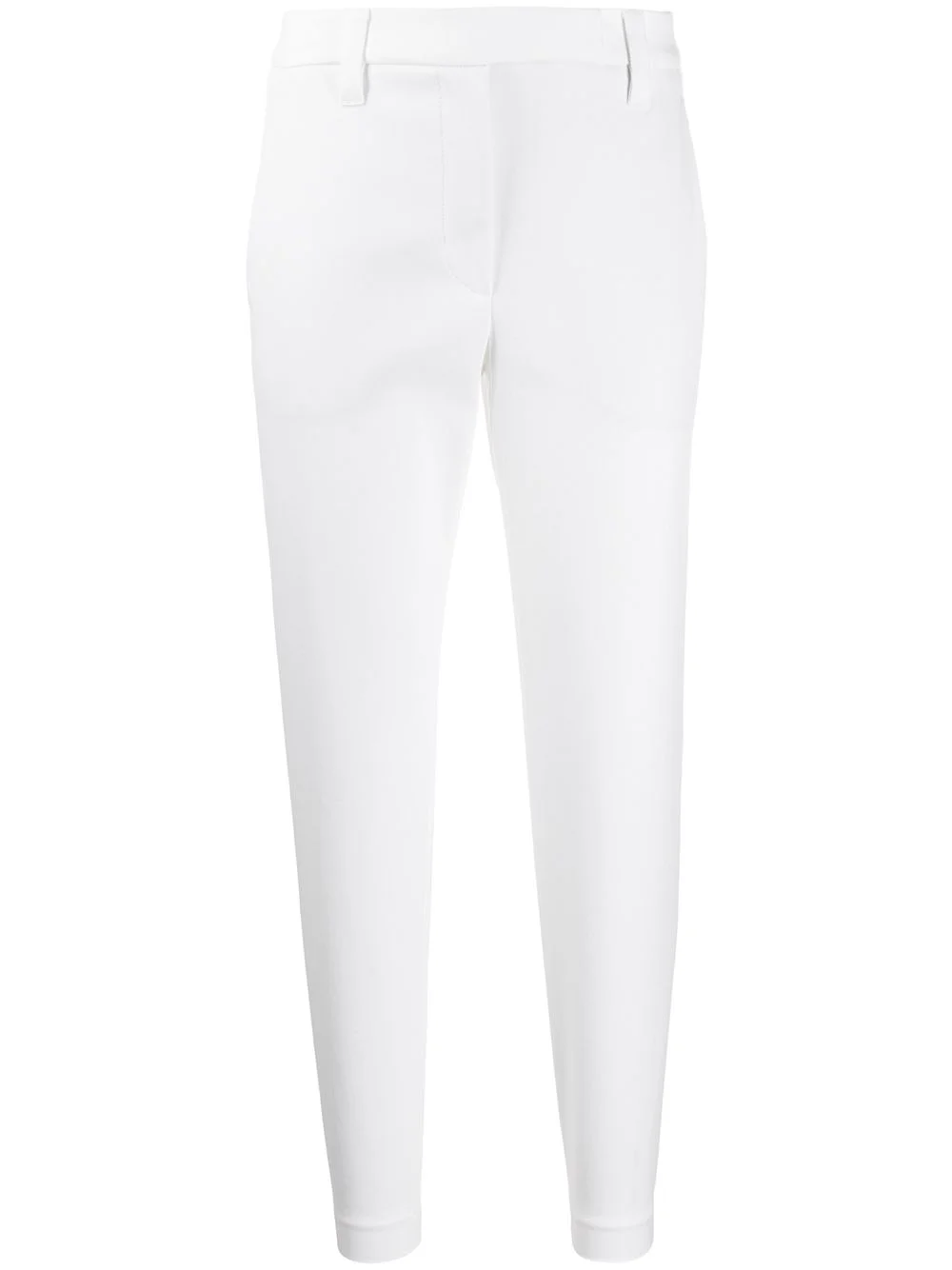 slim-fit trousers White stretch cotton slim-fit trousers from Brunello Cucinelli featuring belt loops, a slim fit and a concealed hook and zip fastening. Made in Italy Composition Outer: Cotton 97%, Spandex/Elastane 3% Lining: Acetate 68%, Polyester 32% Washing instructions Dry Clean Only