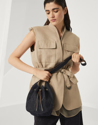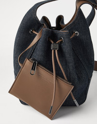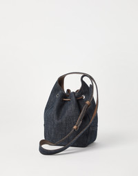 The classic bucket is reinterpreted in a summery way, giving life to this small BC Duo bucket bag. The informal no-fade denim showcases the iconic contrasting stitching of denim trousers, a detail that enhances the accessory’s soft lines. A precious monili embroidery illuminates the practical drawstring with a delicate feminine touch. MATERIALS The soft cotton denim is characterized by a delicate and slightly uneven color obtained with a special dyeing process in different stages. Thanks to this technique, the color appears slightly streaked, with an almost three-dimensional appearance. A very small percentage of spandex provides added comfort. DETAILS Drawstring closure Adjustable shoulder strap Detachable internal pochette with zipper All metal parts are Nickel-free Nickel-free monili decoration Bag is 26 cm (10.24") long, 12 cm (4.72") wide, and 9 cm (3.54") high 100% COTTON