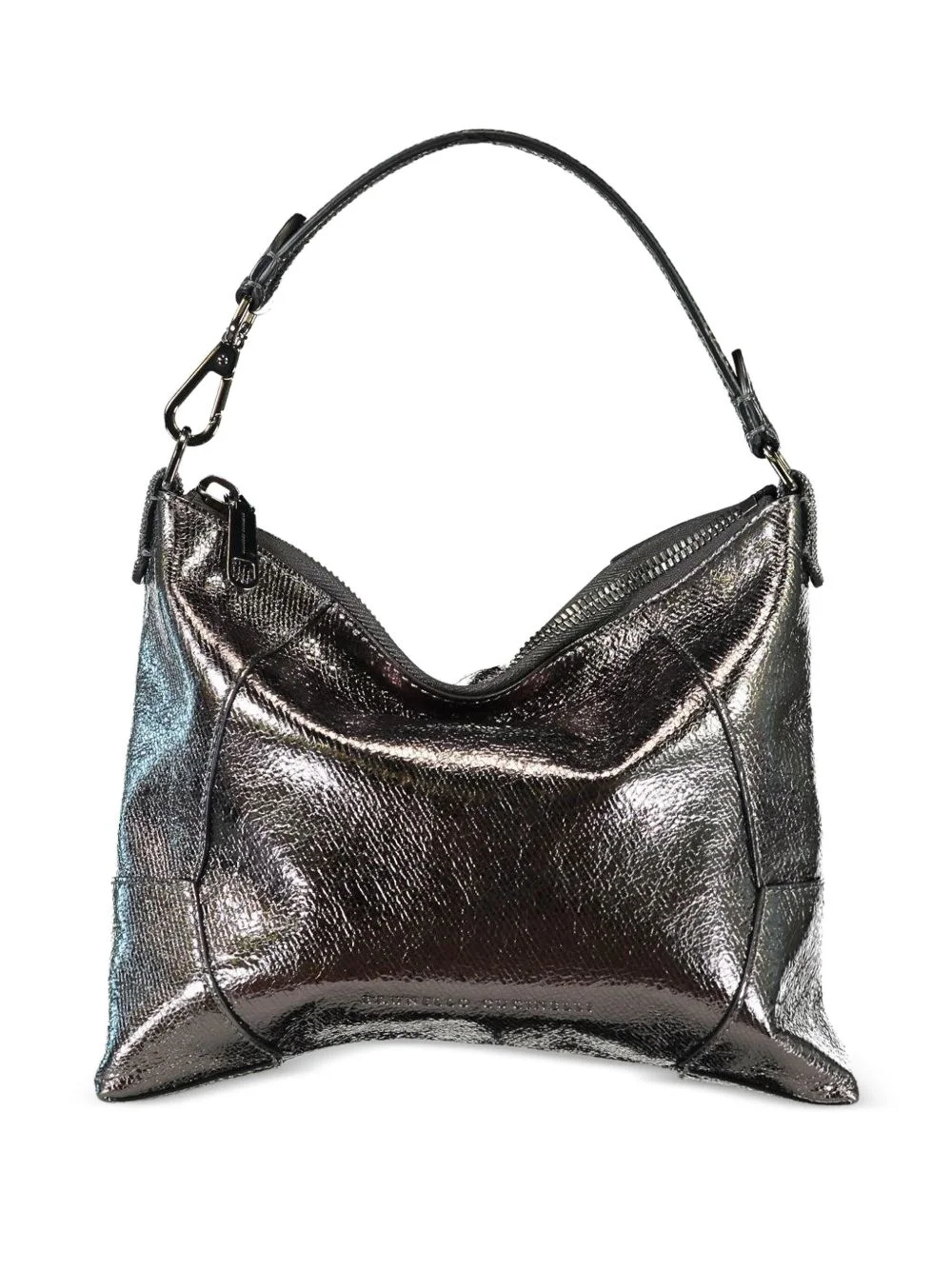 small leather tote bag Highlights - Metallic grey - Leather - Zip fastening - Top handle - Detachable shoulder strap Made in Italy Composition Outer: Leather 100%