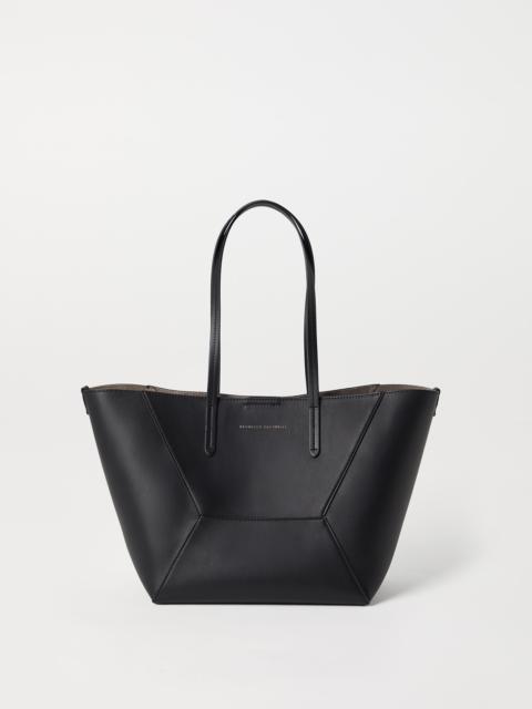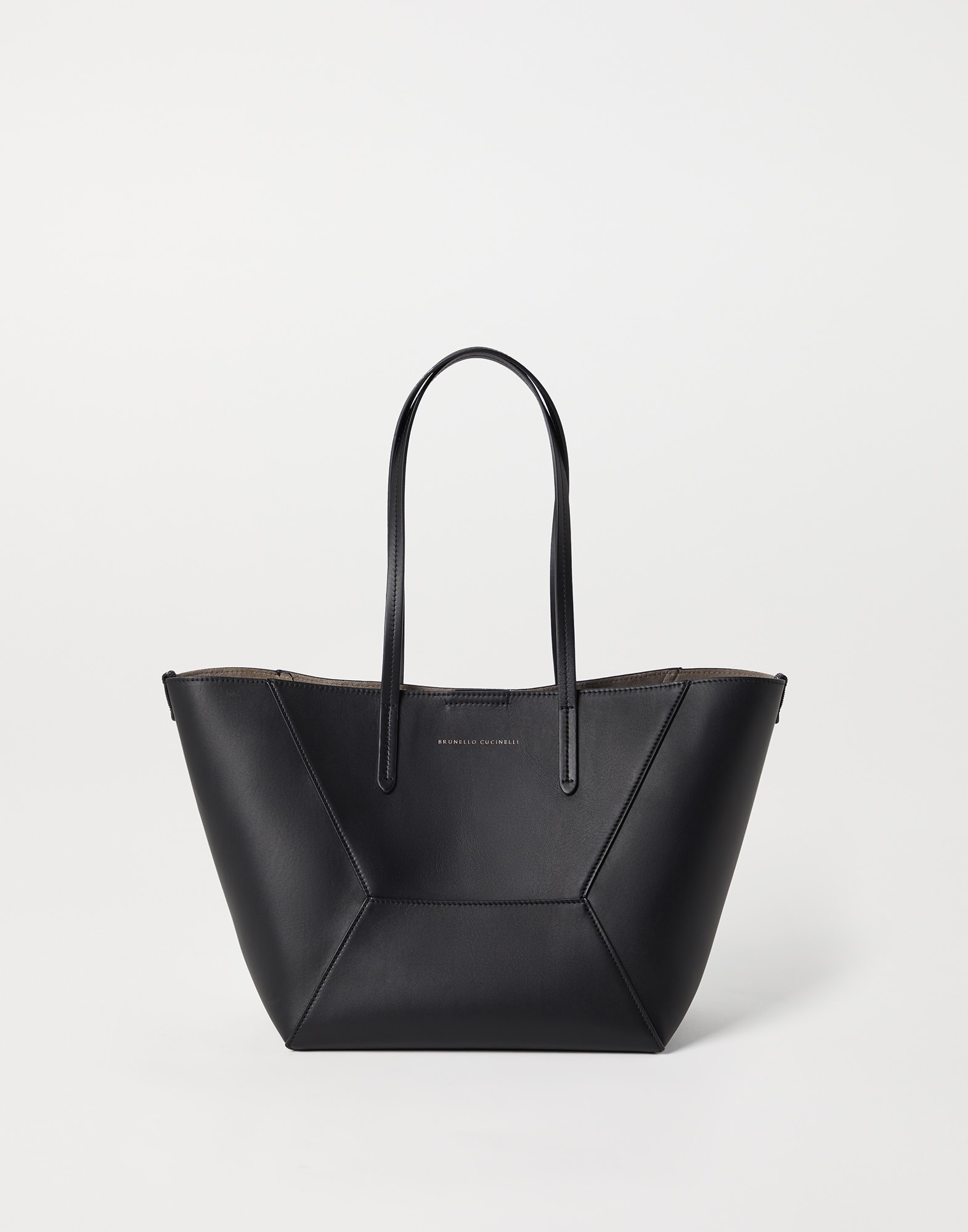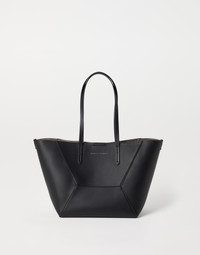 The small calfskin BC Duo bag reinterprets the classic "everyday bag" in true Brunello Cucinelli style. With an ultra-soft hand, the leather enhances the accessory’s contemporary feel, highlighted by bold stitching that emphasizes the squared, minimal lines. A removable internal zipper pouch and the practical magnetic closure complete the style, while two monili embroideries add a feminine, sparkling note. If fastened, the internal ties on the sides allow the shape of the bag to change, making it more compact. MATERIALS Calfskin leather showcases a smooth, soft and even texture. The surface’s slightly matte appearance brings out the colors of the season with an intense, rich effect. DETAILS Magnetic snap closure Double handle Leather lining Detachable internal pochette with zipper Nickel-free monili decoration Bag is 47 cm (18.50") long, 20 cm (7.87") wide and 26 cm (10.24") high REAL LEATHER