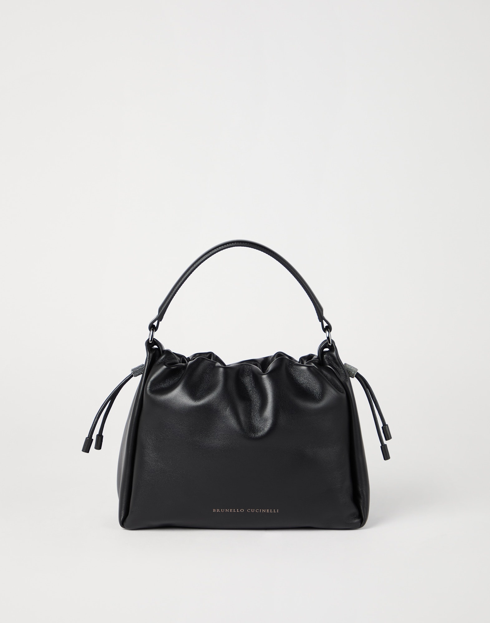 Refined Soft leather enhances the relaxed, essential lines of the classic small Mellow Bucket bag. The timeless design is offered in a contemporary way, creating an accessory with elegant, versatile style. The monili detail enriches the bag with a delicate sparkle. MATERIALS Soft leather is a refined material characterized by a natural grain and a nice supple hand. DETAILS Drawstring closure Adjustable and detachable shoulder strap Handle Leather lining Internal pocket with zip closure Nickel-free monili decoration Bag is 25 cm (9.84") long, 8 cm (3.15") wide and 18 cm (7.09") high 100% REAL LEATHER