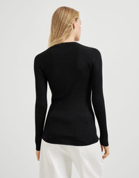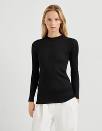 The excellence of Brunello Cucinelli materials enriches the classic flavor of this cashmere and silk Sparkling yarn rib knit sweater. The lightweight, soft yarn combines the refined qualities of the natural fibers with a lame thread which spreads delicate metallic reflections along the surface. Both regular and comfortable proportions are offered by the fit. MATERIALS Cashmere and silk fibers are manufactured together with a fine lame thread to enrich the texture with delicate metallic reflections. The presence of a synthetic fiber provides added comfort. DETAILS Crew-neck Regular shoulder Regular sleeve Rib knit 51% CASHMERE, 22% SILK, 20% NYLON, 7% POLYESTER