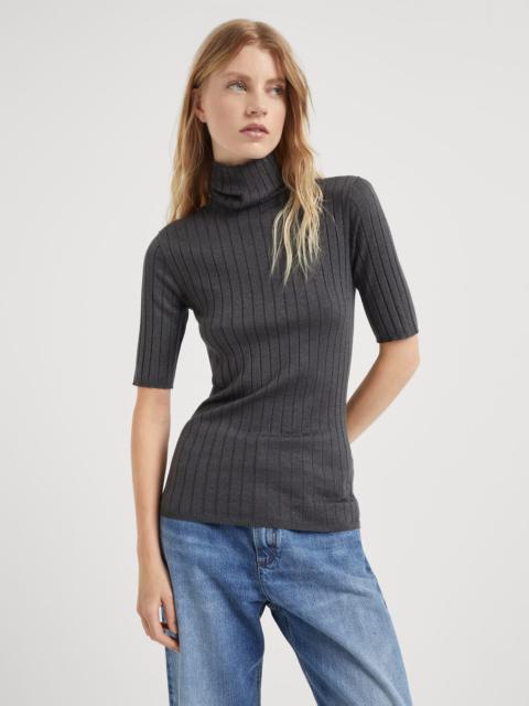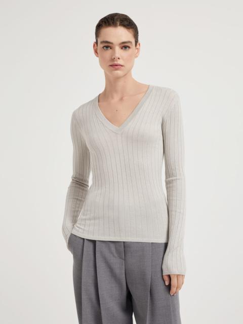 Sparkling cashmere and silk rib knit sweater