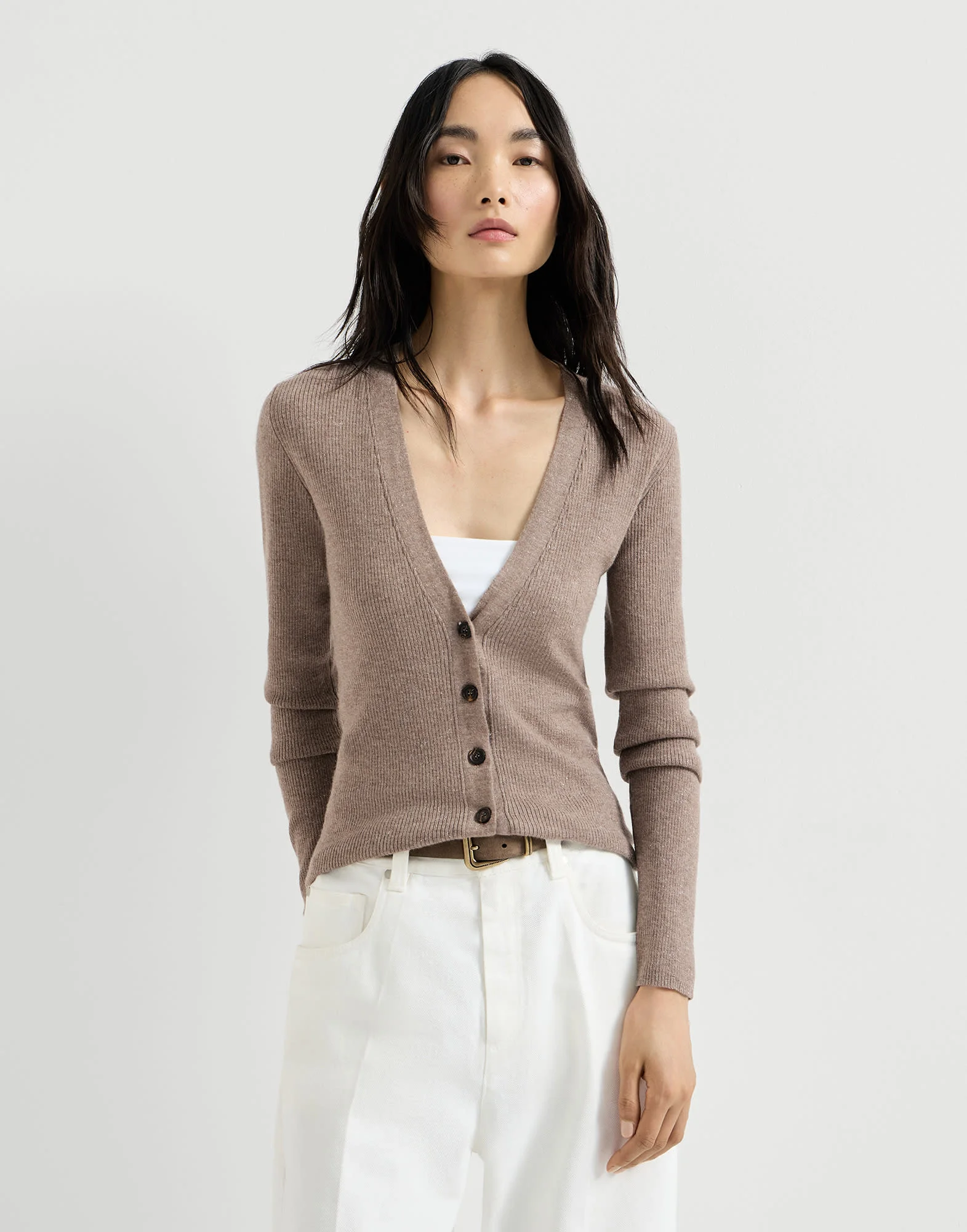 Sparkling cashmere lightweight rib cardigan