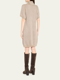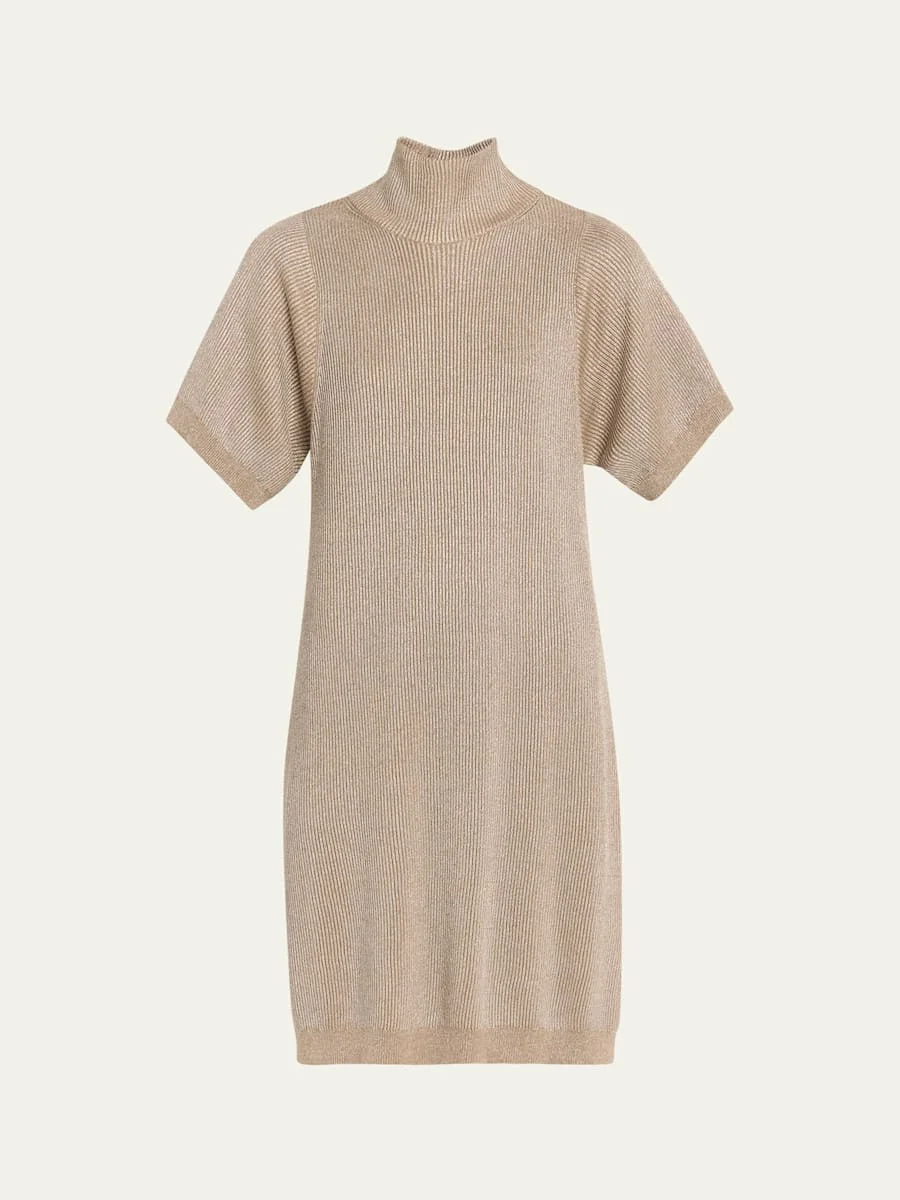 Knit from a ribbed cotton blend, this sweater dress by Brunello Cucinelli features shimmering details Turtleneck Short sleeves Hem falls above the knee Shift silhouette Slipover style Cotton/viscose/metallic fibers Dry clean Made in Italy Online Inquiries: BGS21_BA4KH| Store Inquiries: #5034186