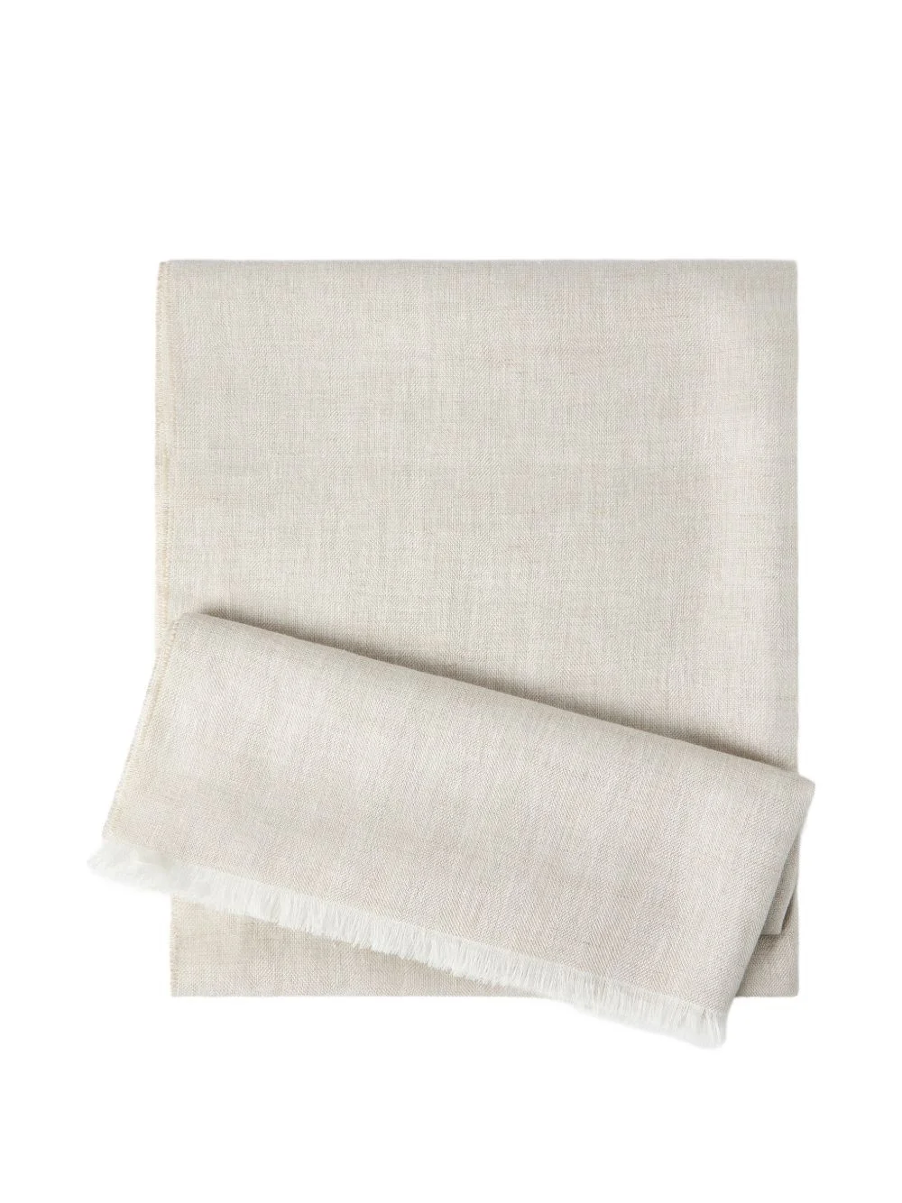 sparkling linen scarf Highlights - The ultimate summer fiber is paired with shiny reflections in this sparkling linen scarf. the lame thread enriches the accessory's clean nature for a refined, feminine feel. - Short side with fringe - The scarf measures approximately 100 cm (39.37") x 120 cm (47.24") - 73% linen, 21% viscose, 6% polyester Made in Italy Composition Eco Linen 73%, Viscose 21%, Polyester 6% Washing instructions Specialist Cleaning