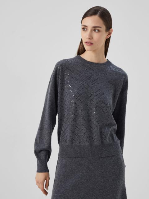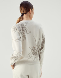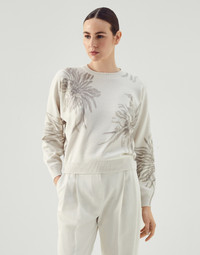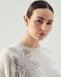 Sparkling marine flower sweater in virgin wool, cashmere and silk
