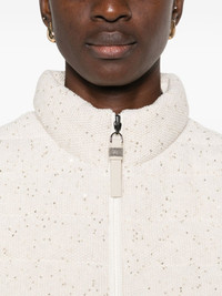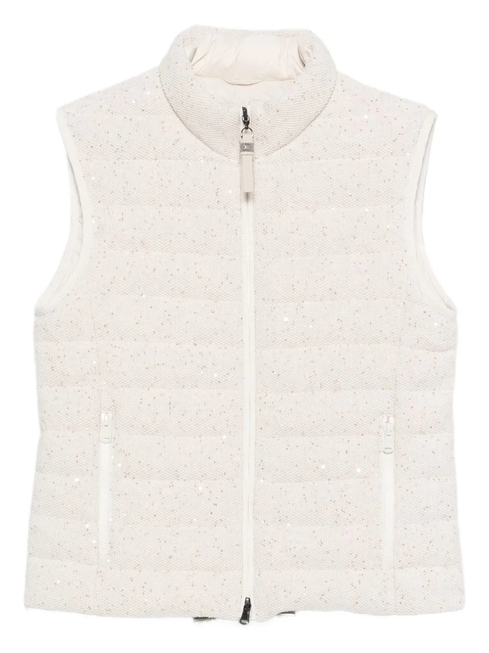 sequin-embellishment gilet Highlights - Light beige - Sequin embellishment - Zip fastening - High neck - Sleeveless Made in Italy Composition Outer: Calf Leather 100%, Cotton 96%, Polyester 4% Lining: Polyamide 100%, Goose Down 90%, Feather Down 10% Washing instructions Dry Clean Only