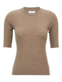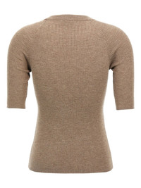 ribbed cashmere sweater Highlights - Brown - Ribbed knit - Crew neck - Short sleeves - Raglan sleeves - Lame thread Made in Italy Composition Cashmere 46%, Viscose 41%, Polyester 13% Washing instructions Read Manufacturer Guidelines