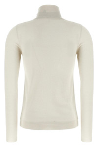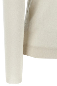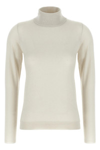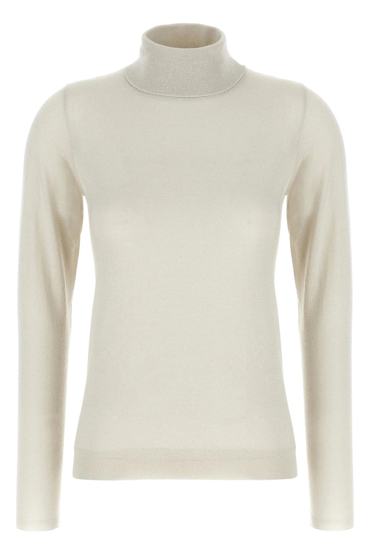 cod. M41800063PC9443 'Sparkling' cashmere and silk blend turtleneck sweater with lame thread, high neck, long cuffed sleeves. Color: White Size & Fit: true to size fit Composition: 51% ws 22% se 20% pa 7% pm Made in: Italy