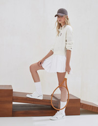 The excellence of Brunello Cucinelli yarns enriches this cashmere knit polo shirt. The cable knitting gives the garment a soft, three-dimensional appearance, while the collar and cuffs are highlighted by an elegant contrast color detail, adding a sporty note. The iconic Solomeo heraldic crest on the chest emphasizes the sport club feel of the polo shirt, finished with metal buttons. MATERIALS The noble cashmere fiber is characterized by an extreme fineness and also for its precious insulating qualities which guarantee warmth, providing coverage and lightness when worn. DETAILS Button opening Drop shoulder Wide sleeve Cable knit 100% CASHMERE