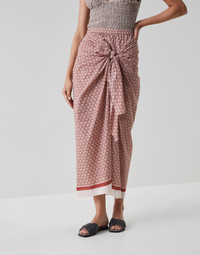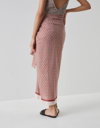 A summery, very feminine feel characterizes this cotton garza Sarong skirt. Knotted around the waist, the front creates a particular draped effect and, at the same time, plays with volume that is reminiscent of the classic summer pareo. The Starburst Flower pattern in the season’s colors adds to the garment’s elegant aesthetic, which is ideal to enrich the season’s outfits with an original touch. MATERIALS Characterized by a very loose weave, the cotton garza fabric showcases a slightly crisp hand, obtained through the twisting process of the threads. The hand is particularly fresh and lightweight. DETAILS Pull-up skirt Vent at bottom 100% COTTON