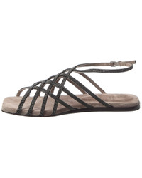 - About the brand: Hailed for its beautifully-crafted cashmere pieces, Brunello Cucinelli was named GQ's Designer of the Year in 2021. With attention to craftsmanship and sustainability, the company exemplifies Italian luxury. - Please note: Size selections are European. For US conversions, please reference size chart. - Made in Italy - Monile Suede Sandal in grey suede and silver-tone hardware with bead embellishments - Adjustable ankle strap with buckle closure - Lightly padded leather insole - Smooth leather sole - Our products are 100% genuine. In some cases we purchase merchandise from trusted independent suppliers and not directly from the brand owner. In all cases we stand by the authenticity of every product sold on our site.